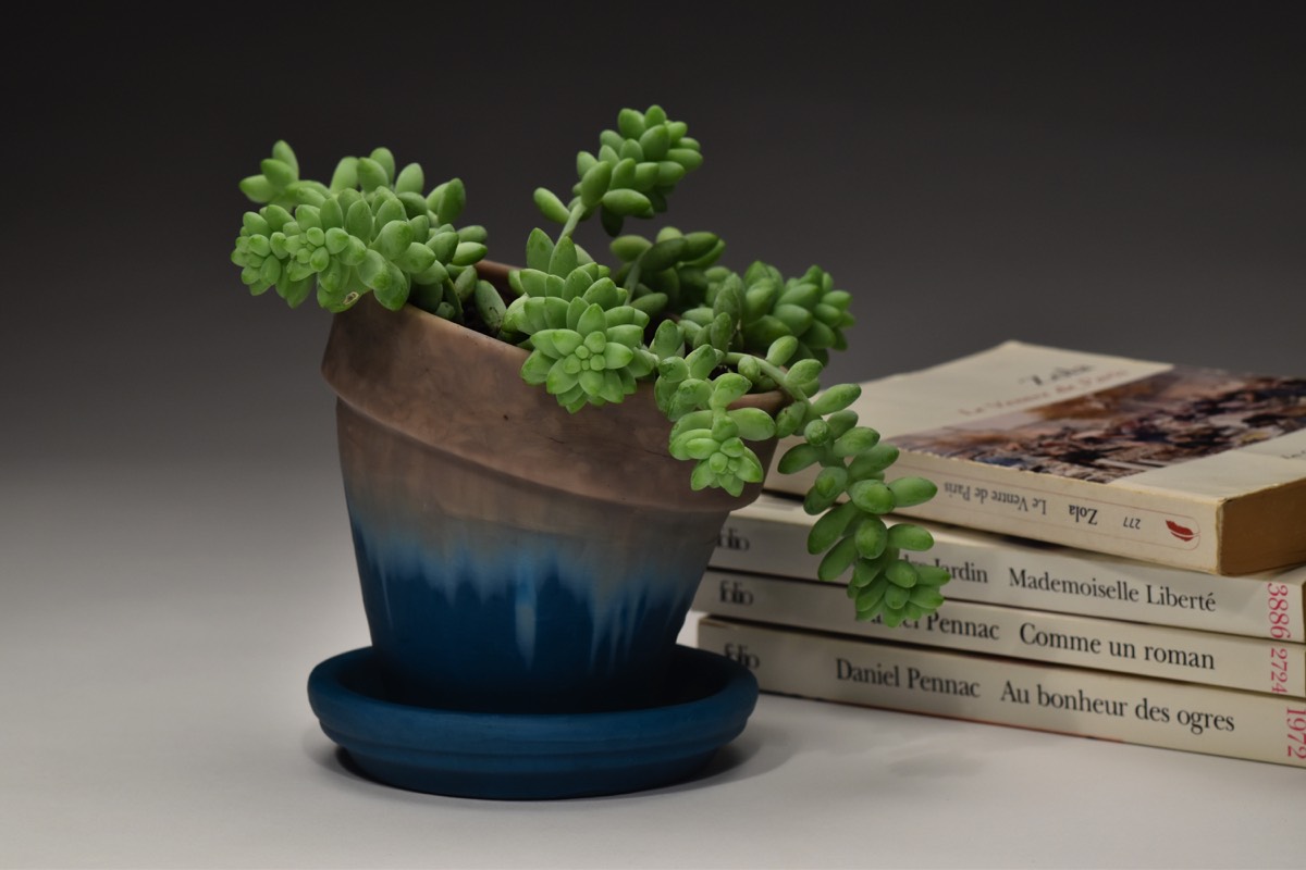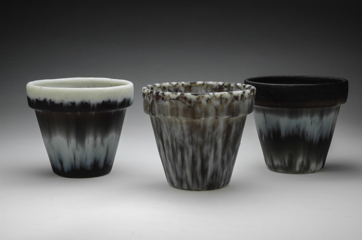 When a break from glass is needed, Nathan heads to the garden. Above, through 5" diameter flowerpots his two main interests meet head to head: Watching plants grow and glass.